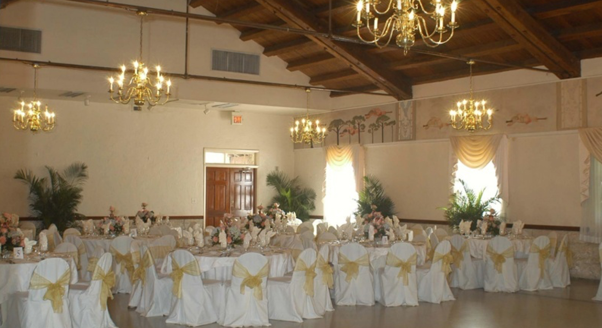 Located at 1001 and 1009 E. Ponce de Leon Boulevard, our truly unique clubhouse has two classic ballrooms, which can be rented separately or together. Imagine the ease of holding your wedding in one hall and your reception in the other.